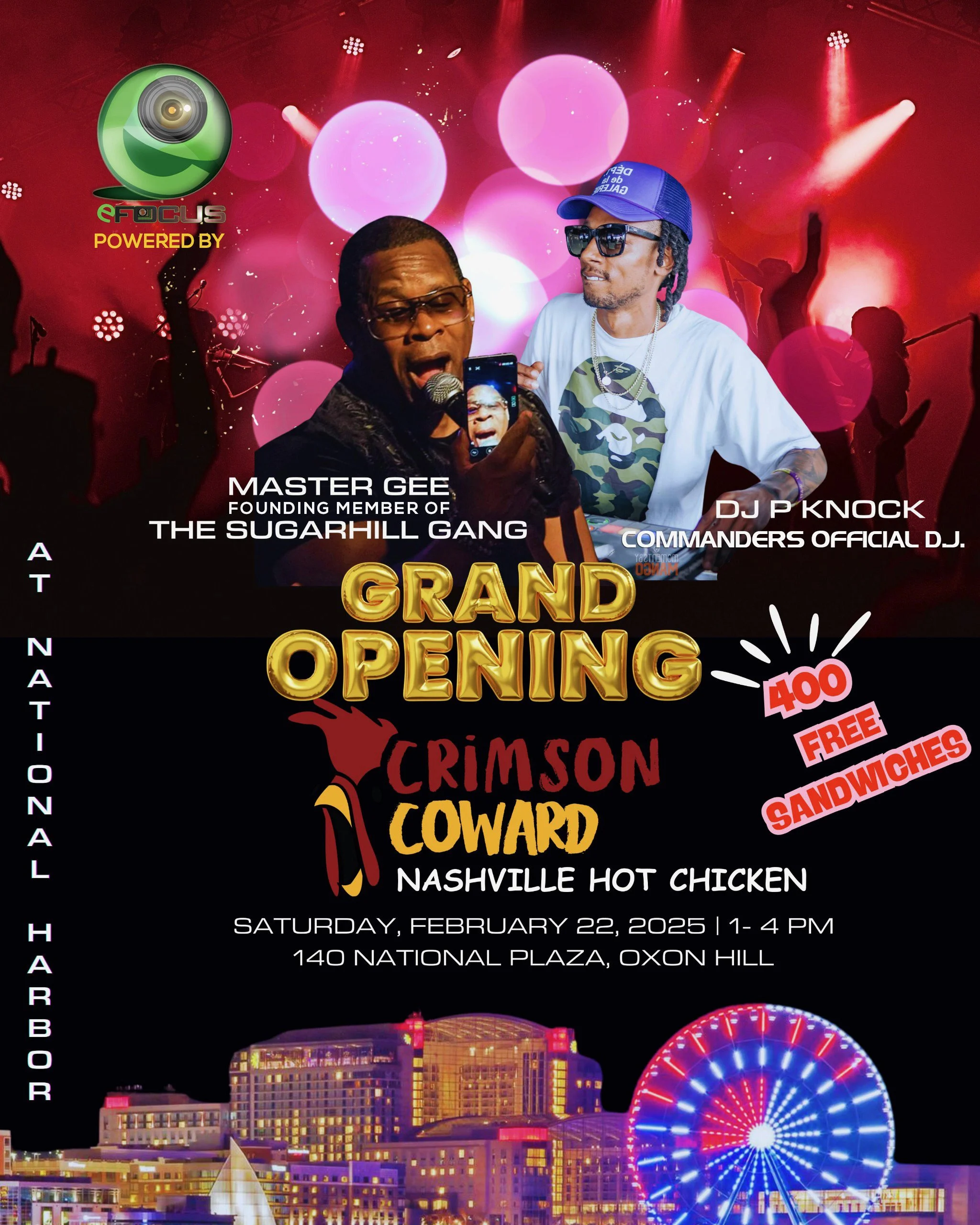 Crimson Coward Nashville Hot Chicken (map) 140 National Plaza Oxon Hill, MD, 20745 United States ✚ gCal ✚ iCal GRAND ~ OPENiNG ~ GRAND ~ OPENiNG ~ GRAND ~ OPENiNG ~ View fullsize