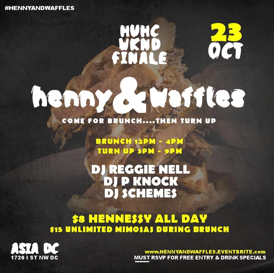 Asia DC (map) 1720 I Street Northwest Washington, DC, 20006 United States ✚ gCal ✚ iCal HENNY&WAFFLESOCT. 23rdIT'S HOWARD'S HOMECOMING. . . .COME OUT & END YOUR WEEKEND RIGHT!!THE LEGENDARY #HENNYANDWAFFLES BRUNCH!!COME FOR BRUNCH. . . .THEN TURN UP!!SEE YOU THERE!!RSVP HERE View fullsize