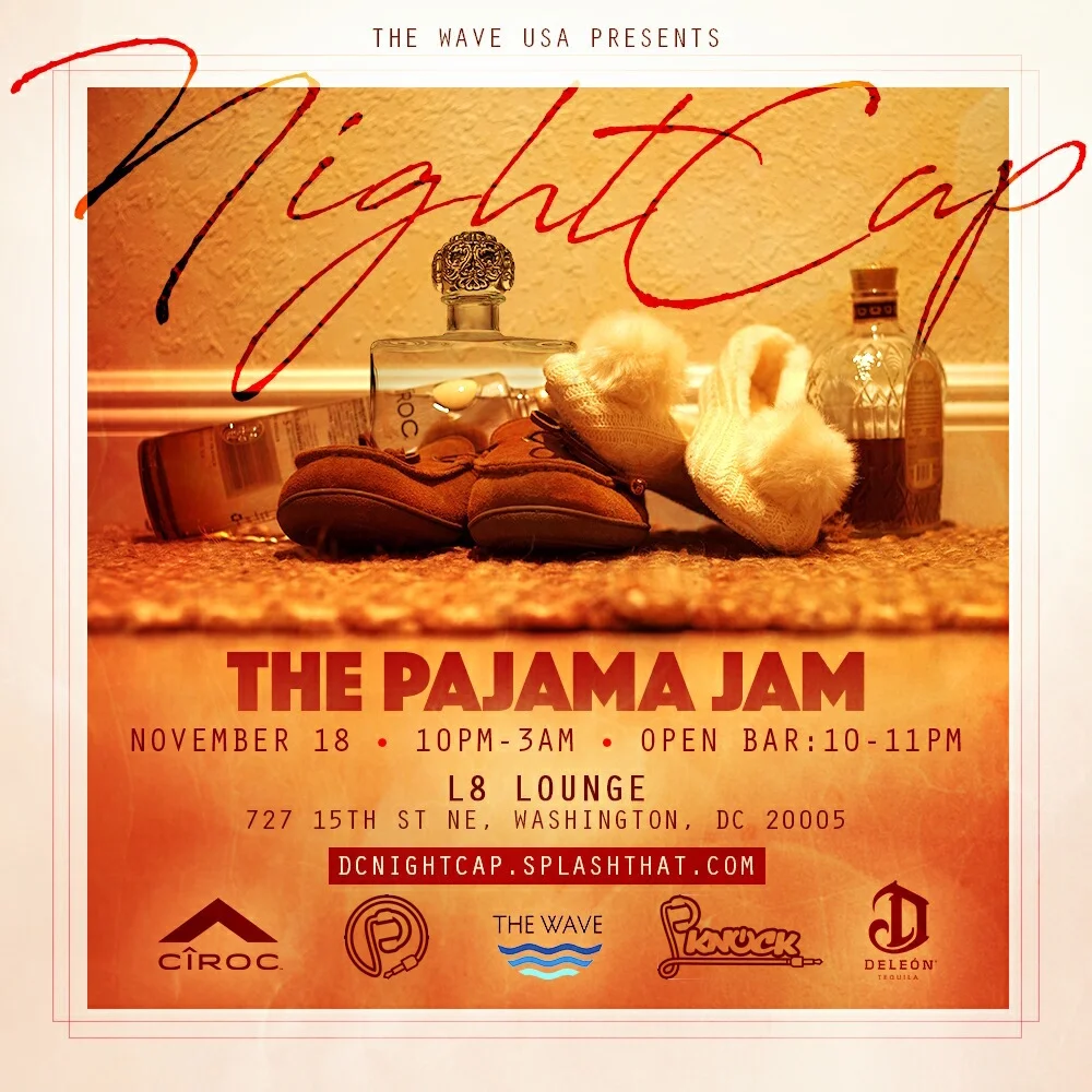 L8 LOUNGE (map) 727 15th Street Northwest Washington, DC, 20005 United States ✚ gCal ✚ iCal THE WAVE USA PRESENTS . . .NIGHT CAPTHE PAJAMA JAMGET YOUR TICKETS TODAY!!#DCNIGHTCAP #THEWAVE #THEPAJAMAJAM View fullsize